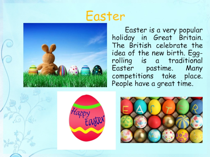 Easter		Easter is a very popular holiday in Great Britain. The British celebrate the idea of the new