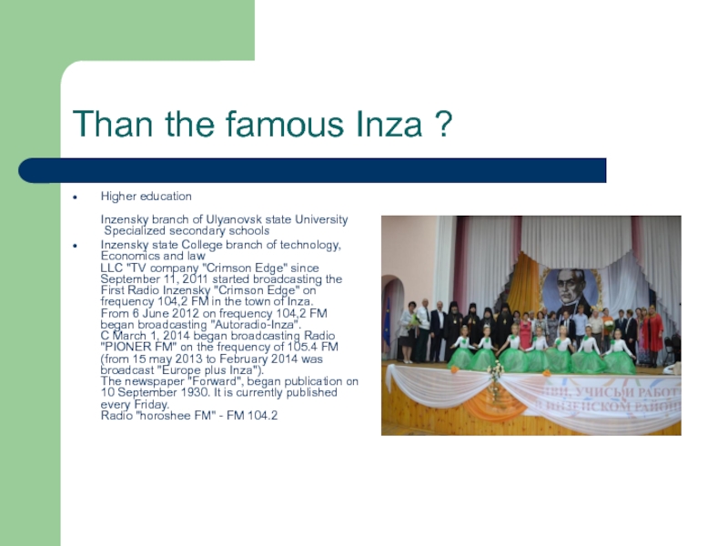 Than the famous Inza ? Higher education  Inzensky branch of Ulyanovsk state University  Specialized secondary