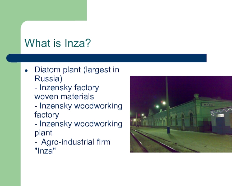 What is Inza? Diatom plant (largest in Russia)  - Inzensky factory woven materials  -