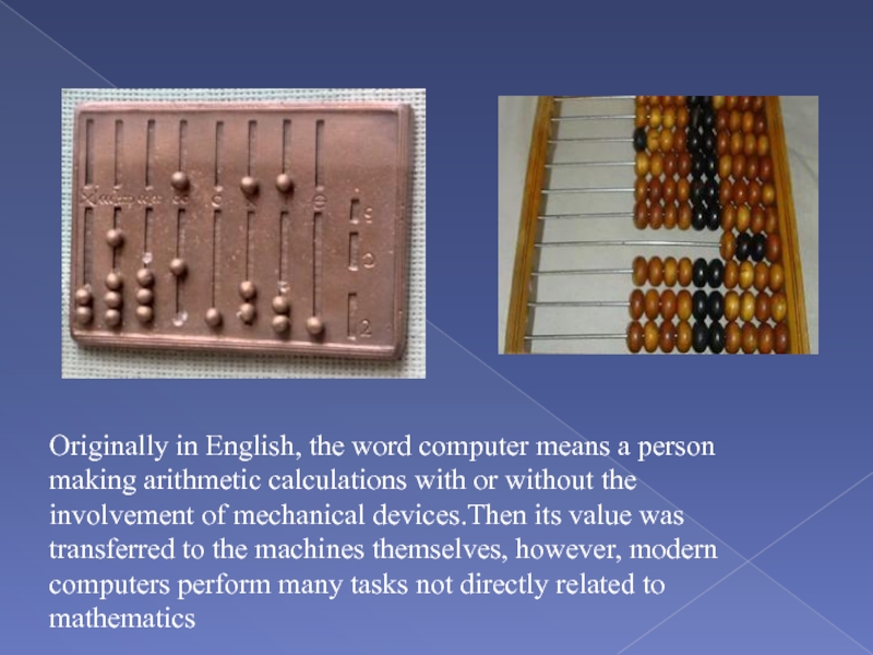 Слайд 3Originally in English, the word computer means a person making arithmetic