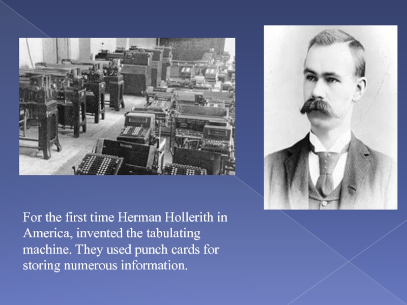 Слайд 5For the first time Herman Hollerith in America, invented the tabulating