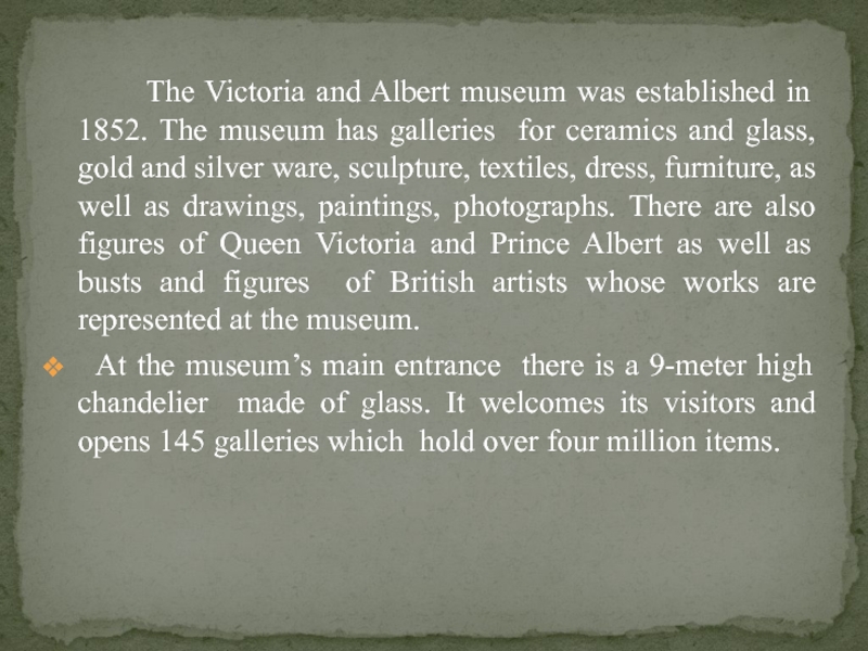 Слайд 5 The Victoria and Albert museum was