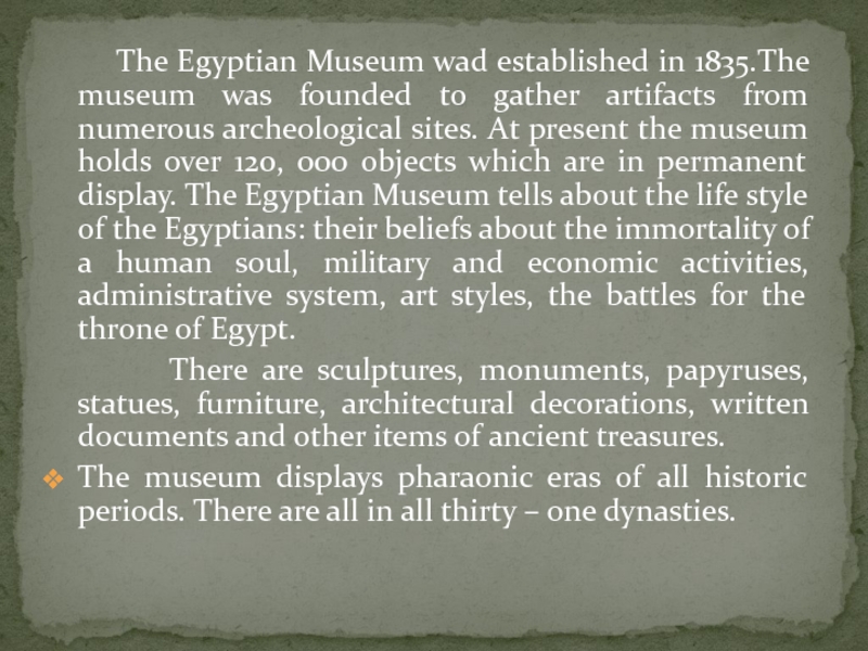 Слайд 11 The Egyptian Museum wad established in 1835.The