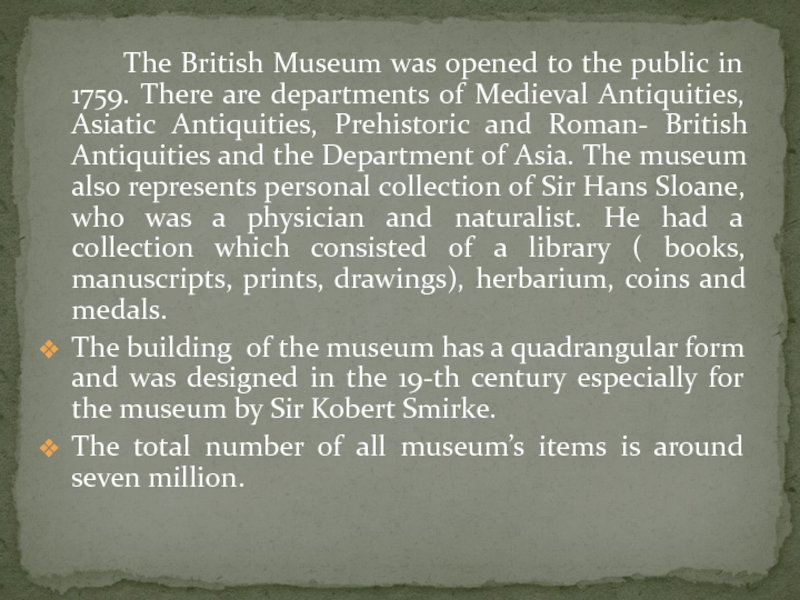 Слайд 3 The British Museum was opened to the