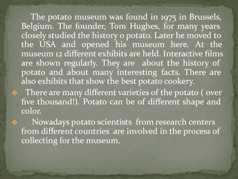 Слайд 15 The potato museum was found in 1975 in