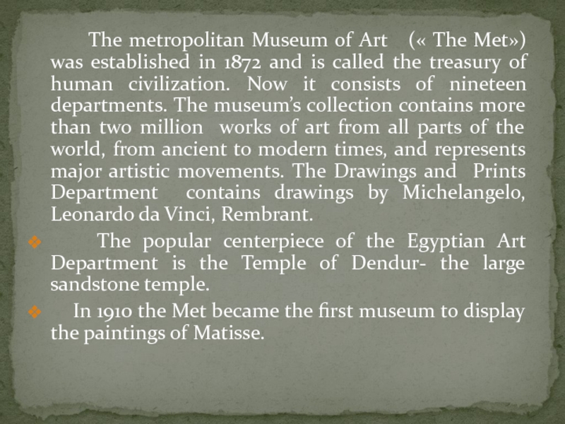Слайд 7 The metropolitan Museum of Art («