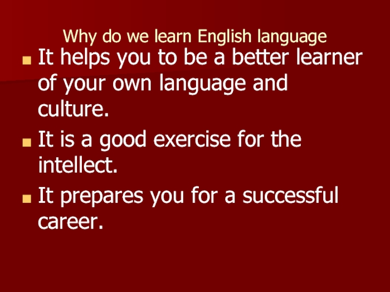 Why do we learn English languageIt helps you to be a better learner of your own language