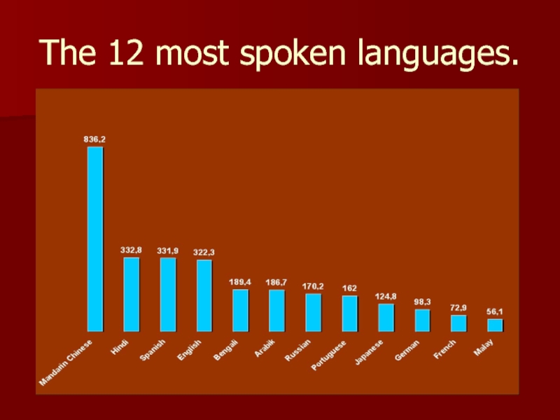 Then follow German, French and Malay with fewer than 100 million speakers.