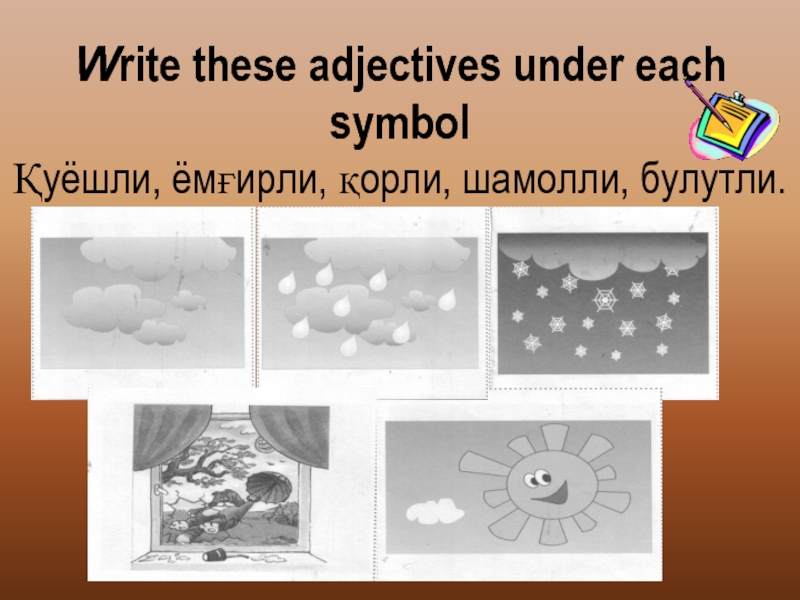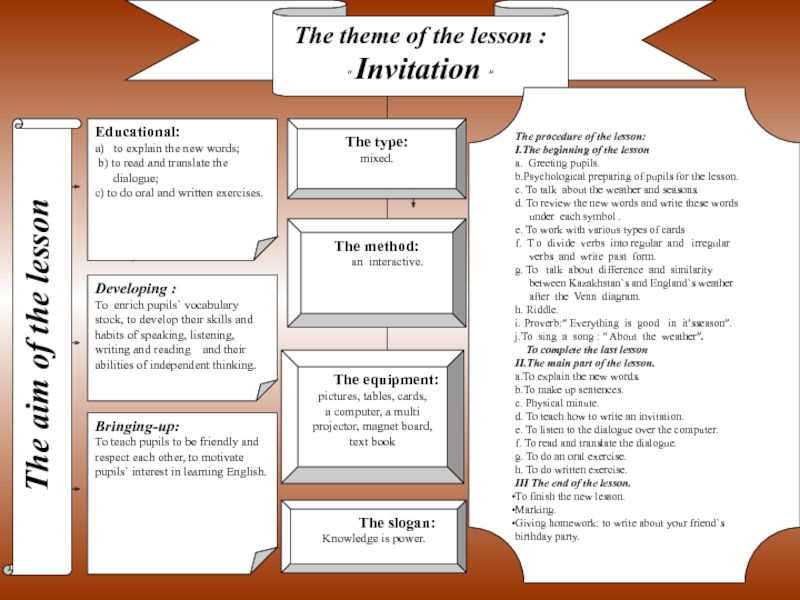 I.The beginning of the lesson a. Greeting pupils. b.Psychological preparing of pupils for the lesson. c. To talk about the weather and seasons. d. To review the new words and write these words