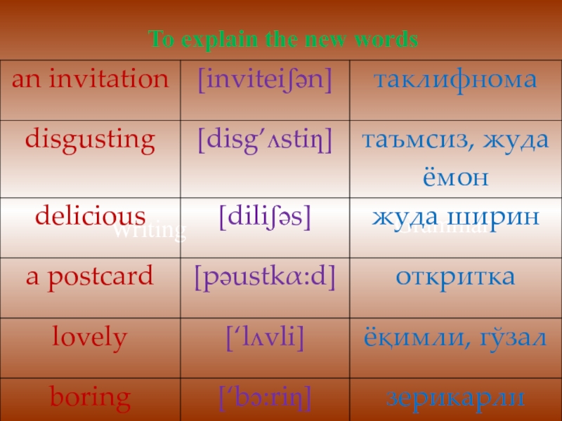 To complete the last lesson II.The main part of the lesson. a.To explain the new words. b.To make up sentences. c. Physical minute.