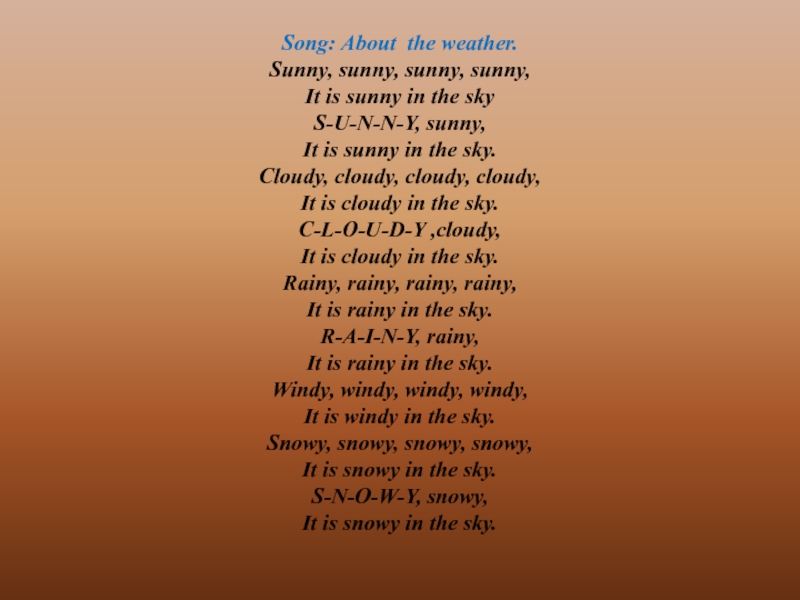 i. Proverb:” Everything is good in it’sseason”. j.To sing a song : “ About the weather”.