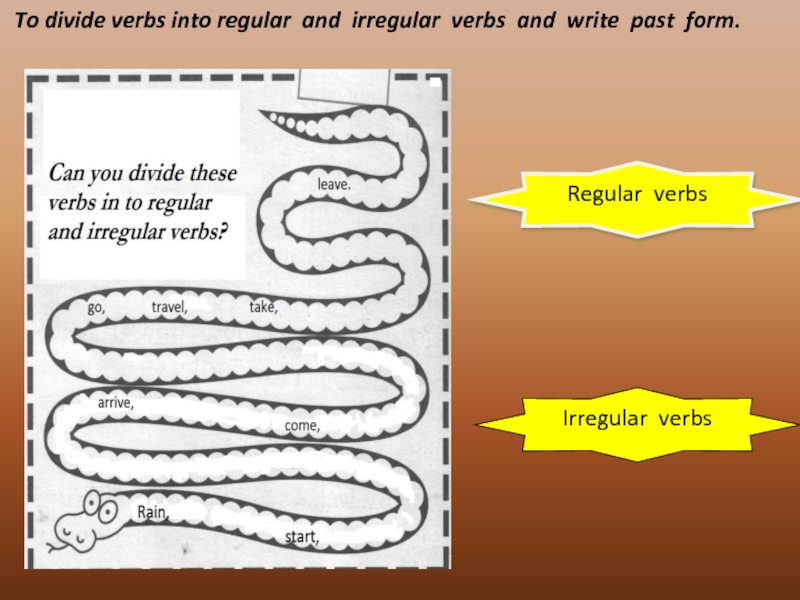 under each symbol . e. To work with various types of cards f. T o divide verbs into regular and irregular