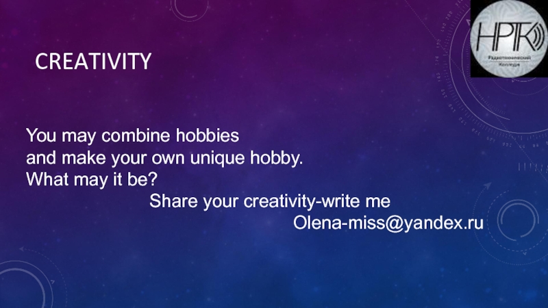 creativityYou may combine hobbies and make your own unique hobby. What may it be? 						Share your creativity-write
