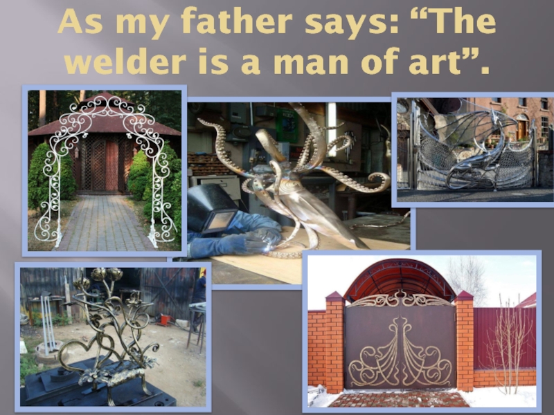 Слайд 9As my father says: “The welder is a man of art”.