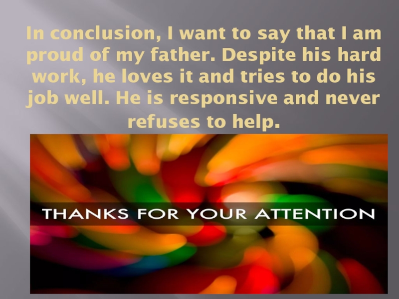 Слайд 10In conclusion, I want to say that I am proud of