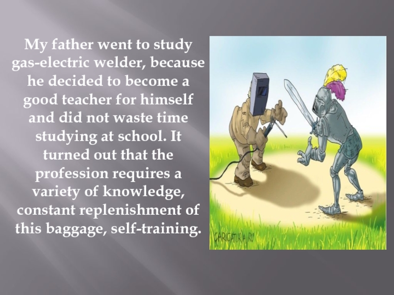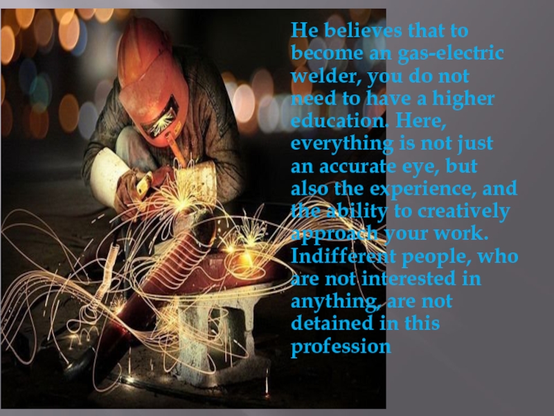 Слайд 8He believes that to become an gas-electric welder, you do not
