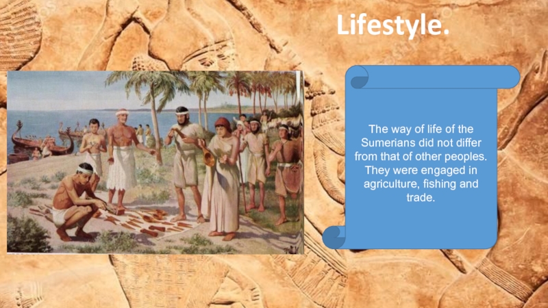 Lifestyle.The way of life of the Sumerians did not differ from that of other peoples. Тhey were