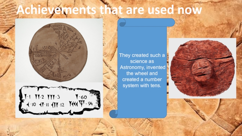 Achievements that are used nowThey created such a science as Astronomy, invented the wheel and created a