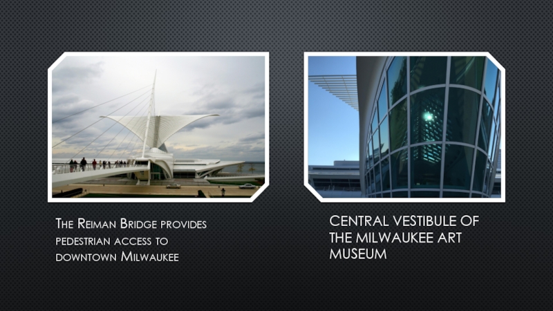 Слайд 9Central vestibule of the Milwaukee Art Museum