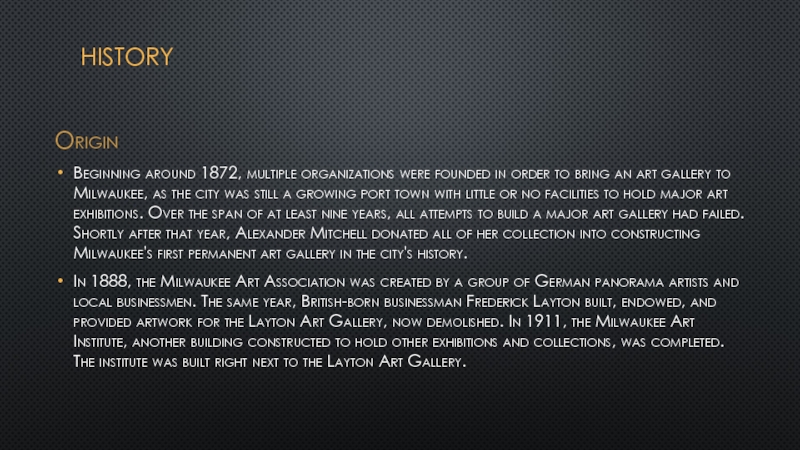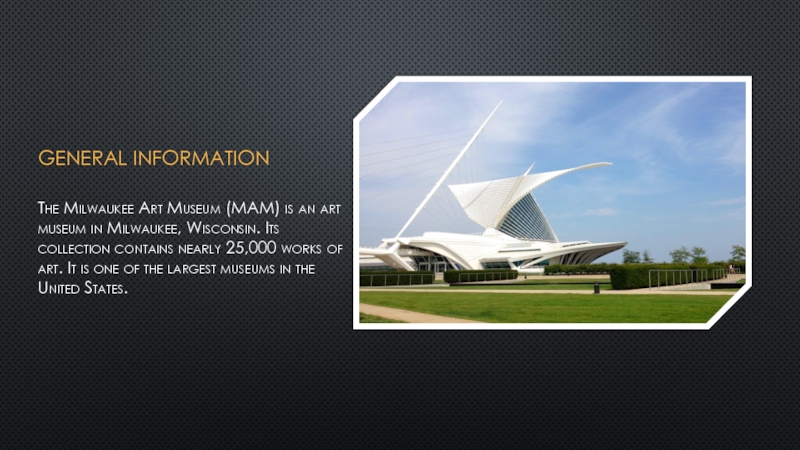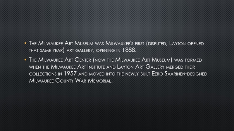 Слайд 4The Milwaukee Art Museum was Milwaukee's first (disputed, Layton opened that