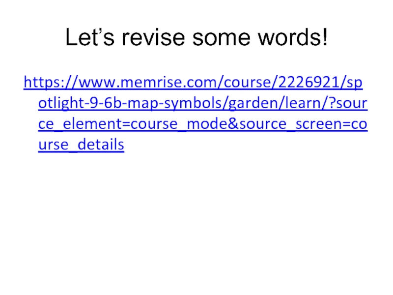 Let’s revise some words!https://www.memrise.com/course/2226921/spotlight-9-6b-map-symbols/garden/learn/?source_element=course_mode&source_screen=course_details