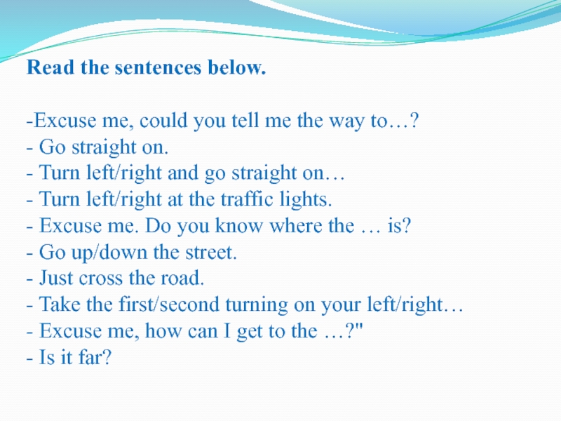 Слайд 6Read the sentences below. -Excuse me, could you tell me the way
