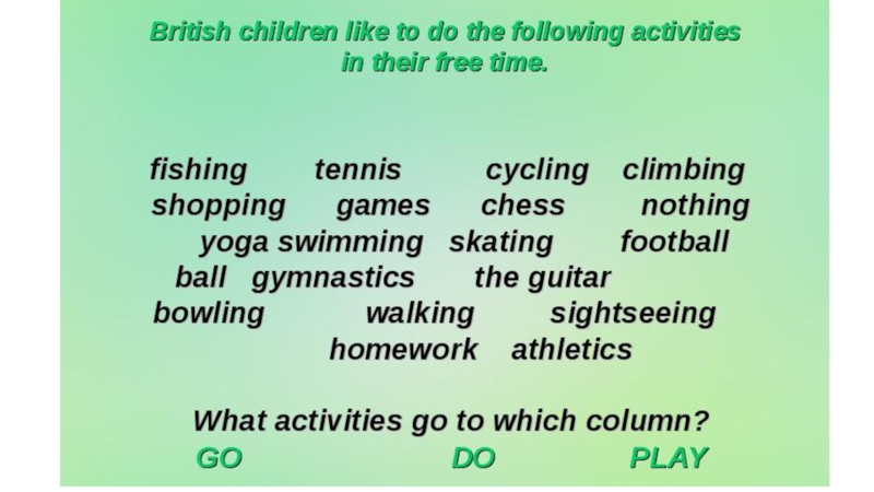 Презентация, доклад по английскому языку на тему : Свободное время (6 класс)