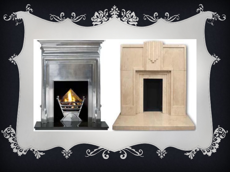 many have survived today. The below images show an example of a polished cast iron fireplace which was a great addition to the deco home however it was expensive. The other is made of marble and has been cut to the design typical of the fashionable geometrical, linear look that represents this style.
