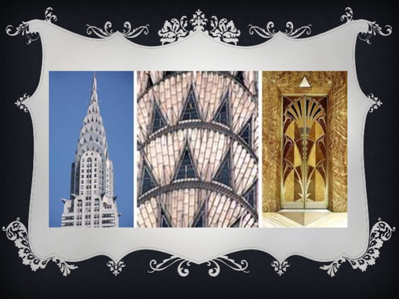 A fantastic example of art deco is the Chrysler Building in New York. Have a look at how shape was used to make up the stylized pattern.