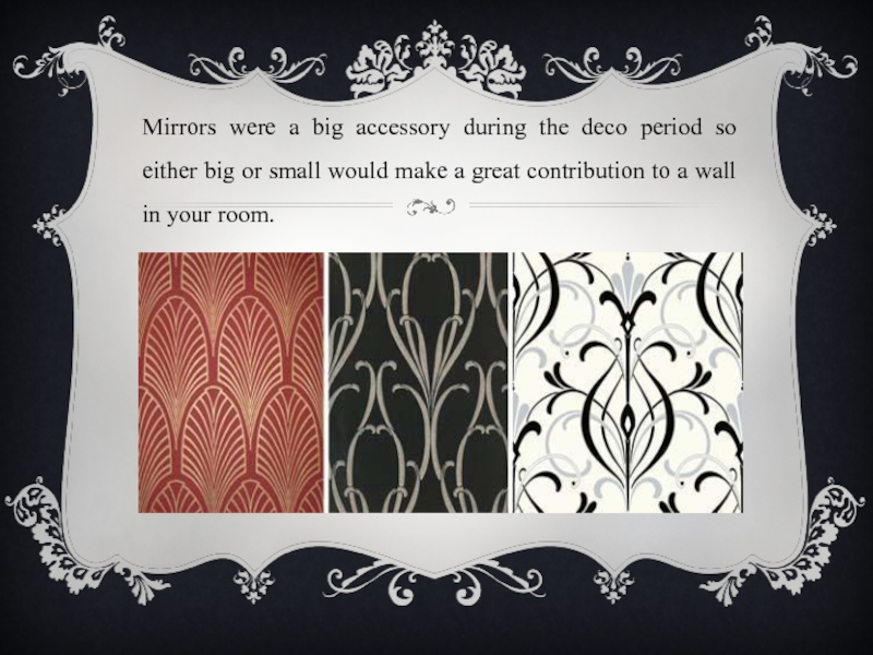 Слайд 11Mirrors were a big accessory during the deco period so either