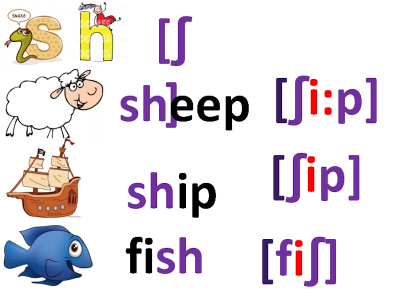 [ʃ ]sheep[ʃi:p] fish[ʃip] ship[fiʃ]
