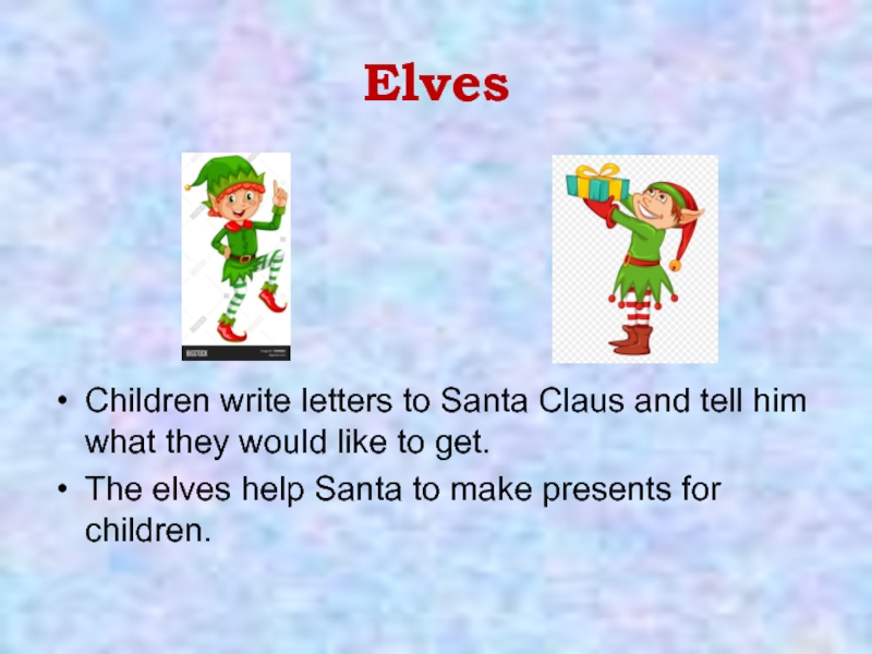 ElvesChildren write letters to Santa Claus and tell him what they would like to get.The elves help