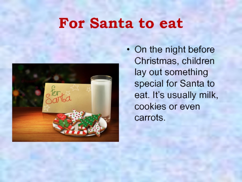 something special for Santa to eat. It’s usually milk, cookies or even carrots.