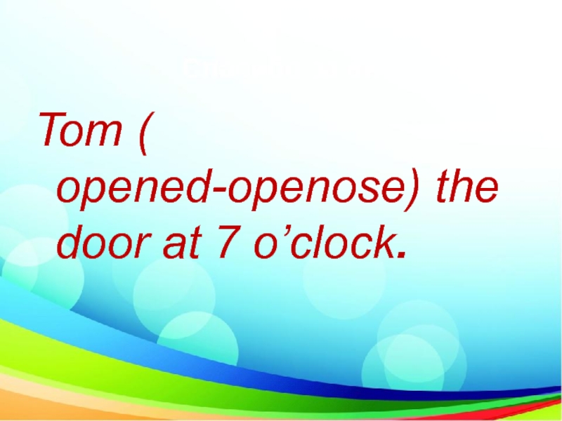 Слайд 14Tom ( opened-openose) the door at 7 o’clock.
