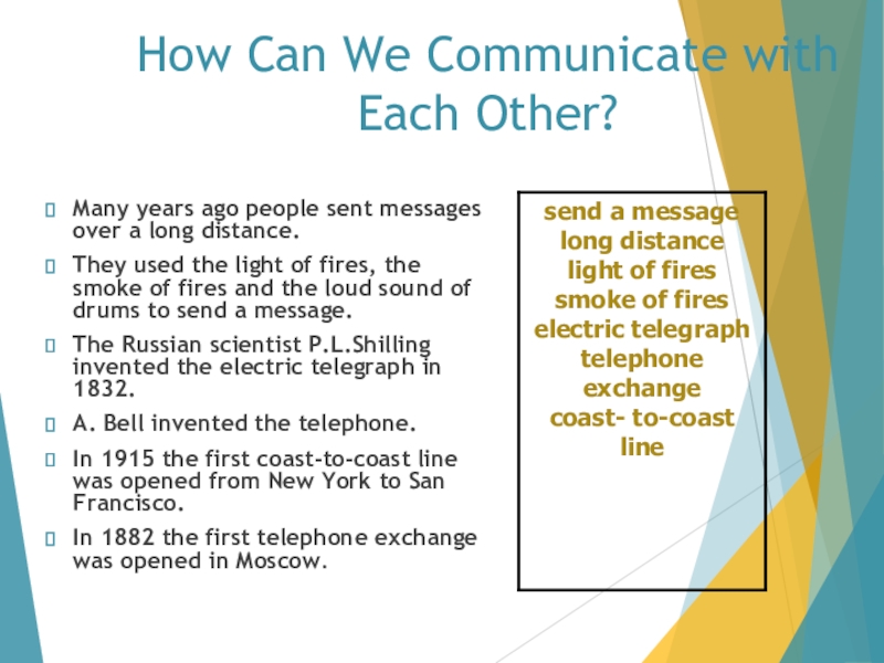 The Russian scientist P.L.Shilling invented the electric telegraph in 1832.