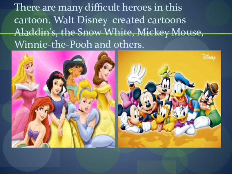 Слайд 9There are many difficult heroes in this cartoon. Walt Disney created