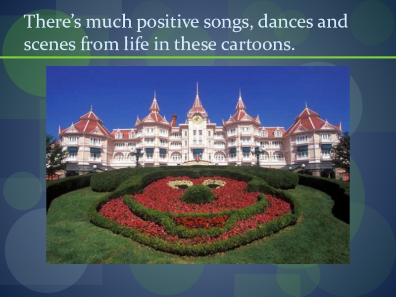 Слайд 10There’s much positive songs, dances and scenes from life in these
