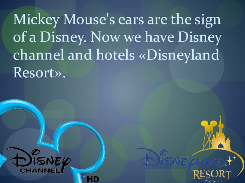 Слайд 7Mickey Mouse's ears are the sign of a Disney. Now we