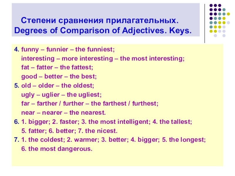 Degrees of Comparison of Adjectives. Keys.