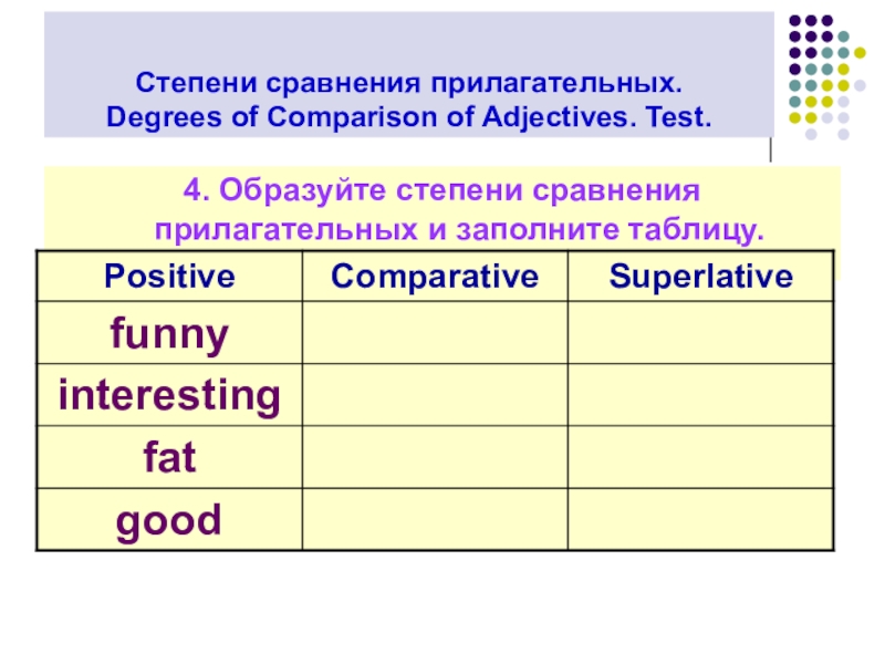 4. Образуйте степени сравнения