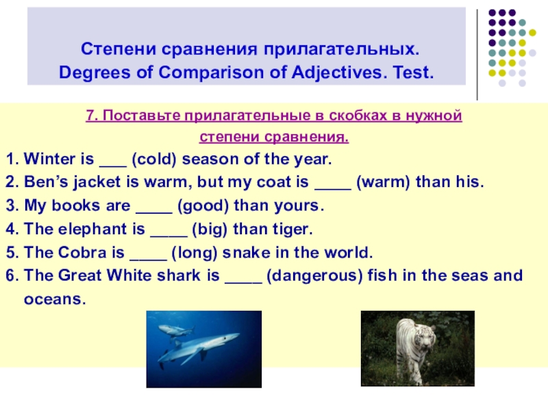 Degrees of Comparison of Adjectives. Test.
