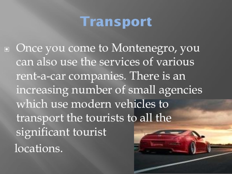 of various rent-a-car companies. There is an increasing number of small agencies which use modern vehicles to transport the tourists to all the significant tourist