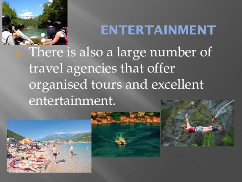 is also a large number of travel agencies that offer organised tours and excellent entertainment.