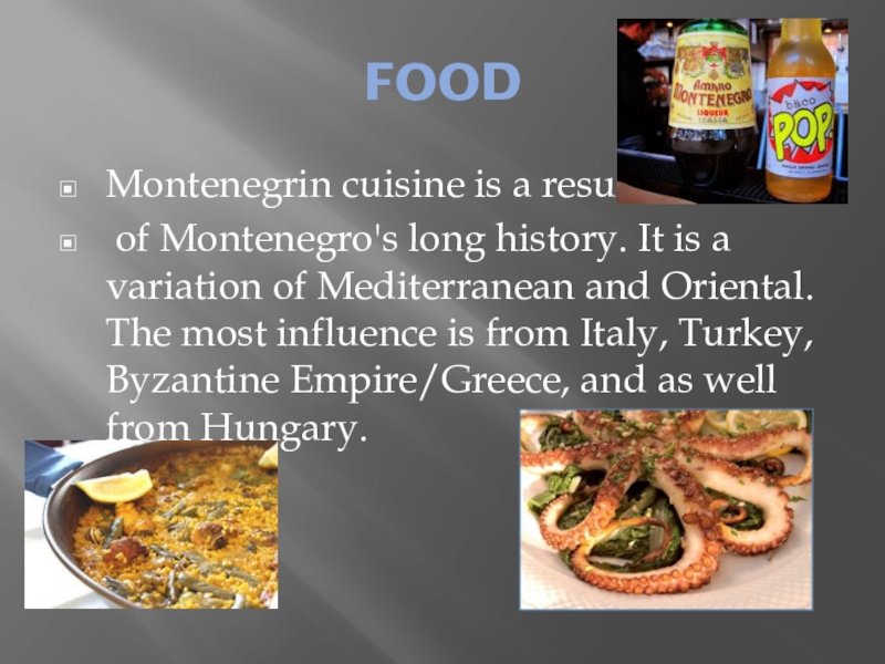 a variation of Mediterranean and Oriental. The most influence is from Italy, Turkey, Byzantine Empire/Greece, and as well from Hungary.