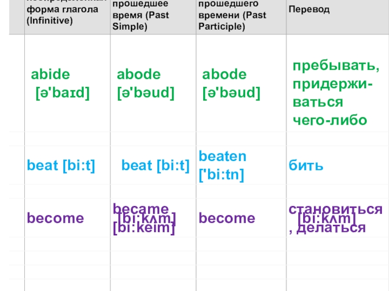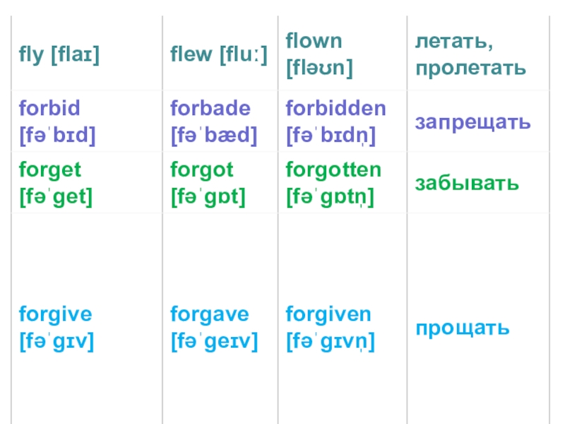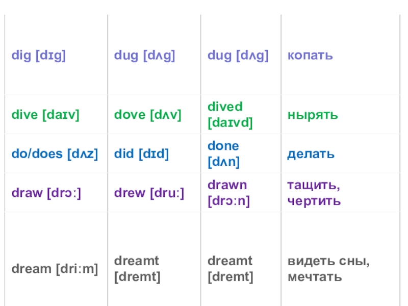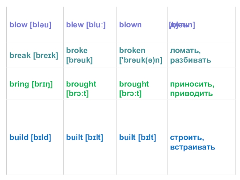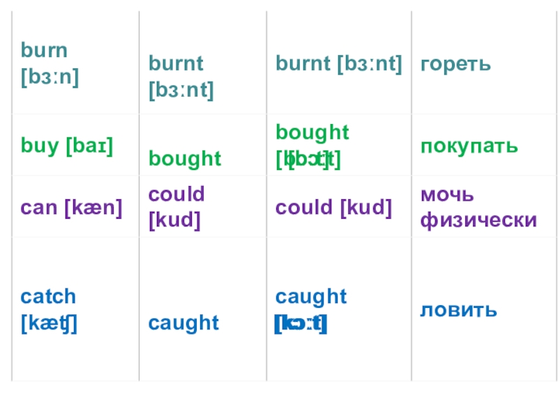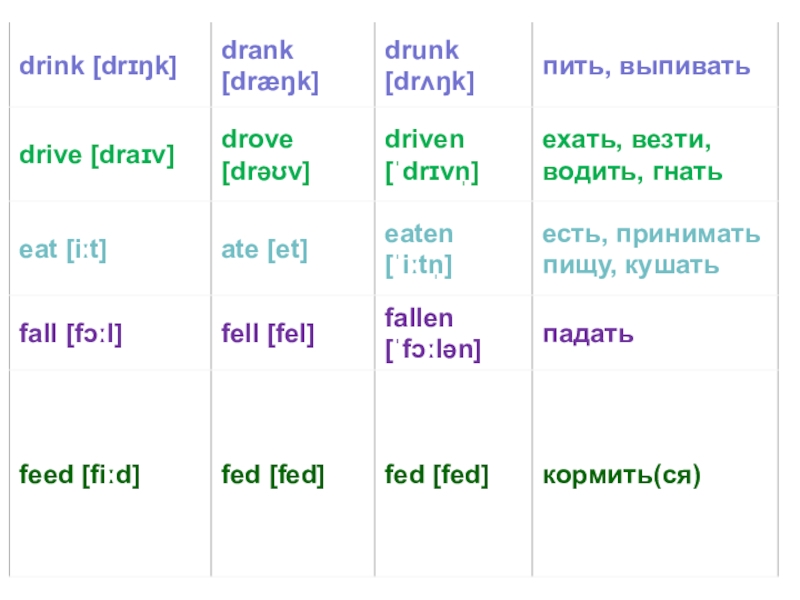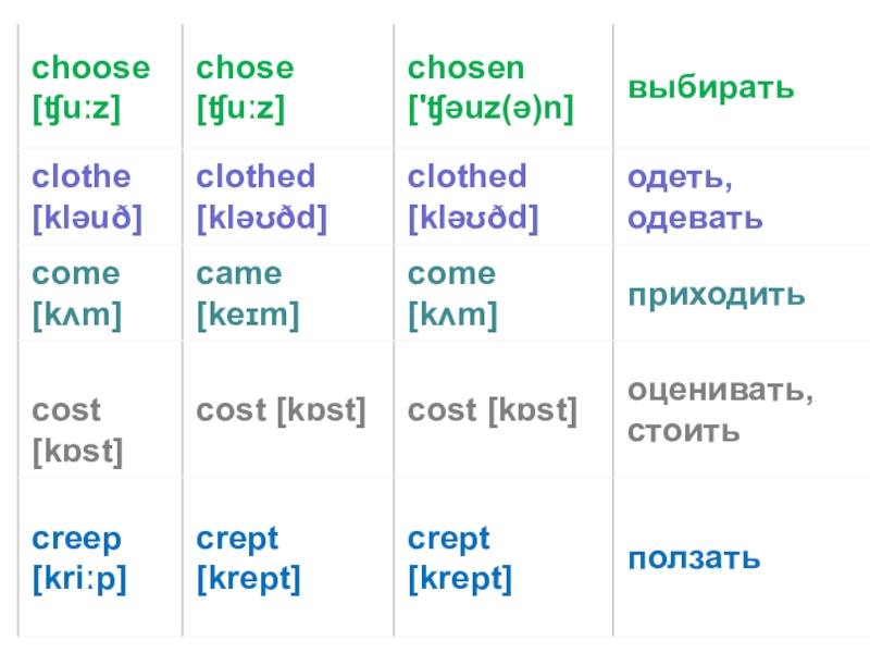 (Past Simple ) часть 3 Неправильные глаголы ( с транскрипцией)