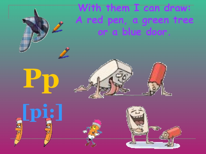 Слайд 17P is for Pencils. With them I can draw: A red pen,
