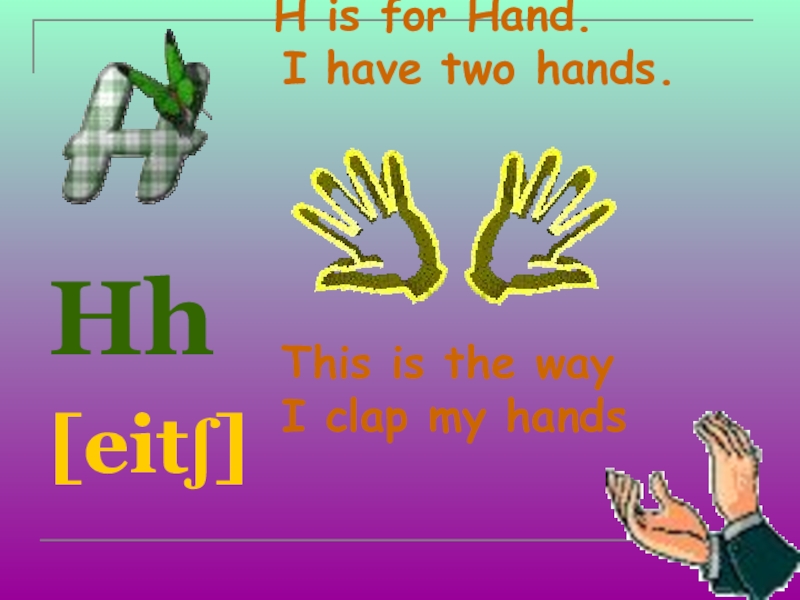 H is for Hand.  I have two hands. Hh[eitʃ] This is the way  I