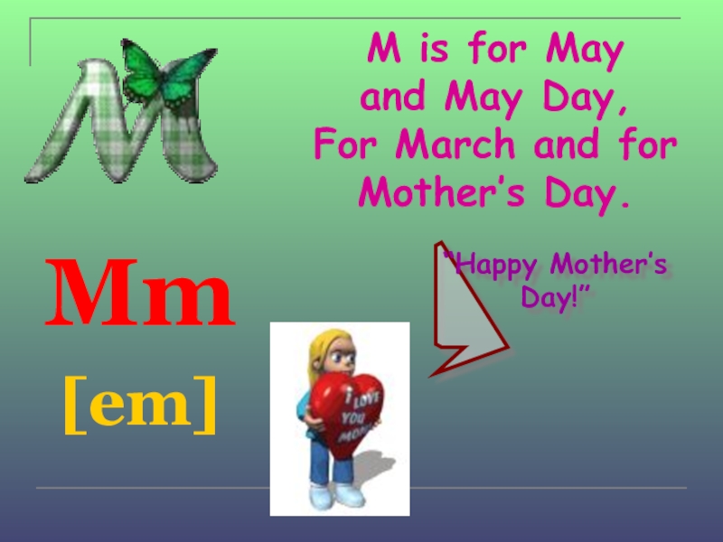Слайд 14M is for May and May Day, For March and for Mother’s