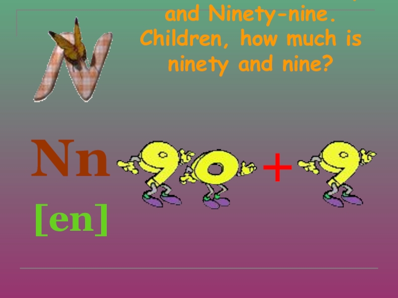 Слайд 15N is for Nine, Ninety and Ninety-nine. Children, how much is ninety