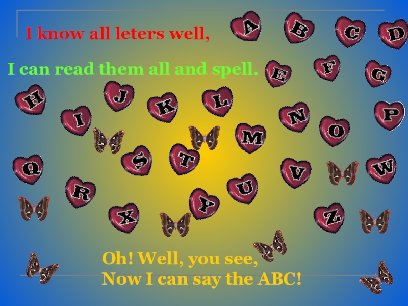 I know all leters well,I can read them all and spell.Oh! Well, you see, Now I can